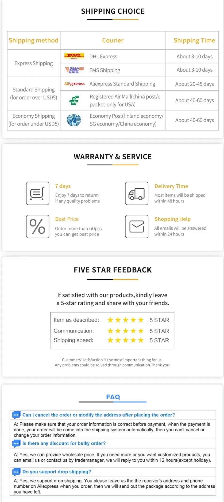 1. Due to the different display and lighting effects, the actual color of the project may differ slightly from the color displayed on the image. Thank you!