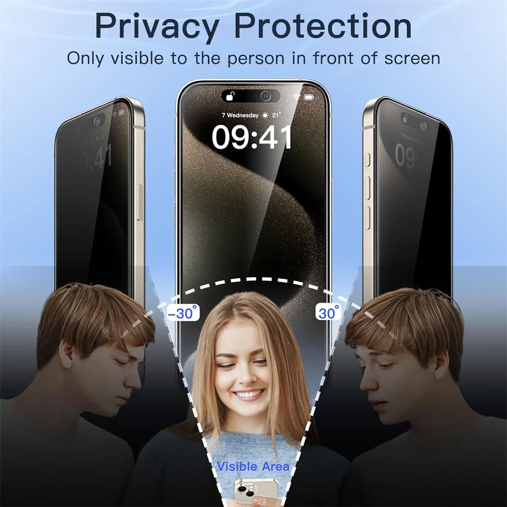 1~4PCS Anti-Spy Glass For iPhone 17 16 15 14 13 Pro Max Privacy Screen Protectors & Camera Protection Film For iPhone15 12 11 Pro mica