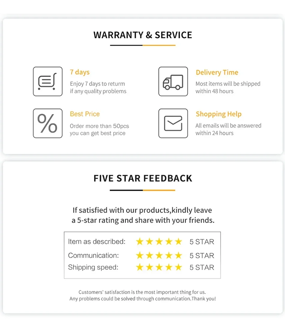 6. If you have any question or need any help about our product, please contact us, we will provide you with the best solution. (For Russian friends: Due to Russian Customs Policy, please provide the full name of the recipient in the order.)