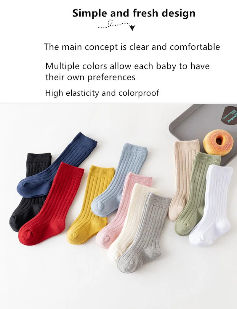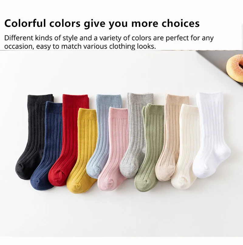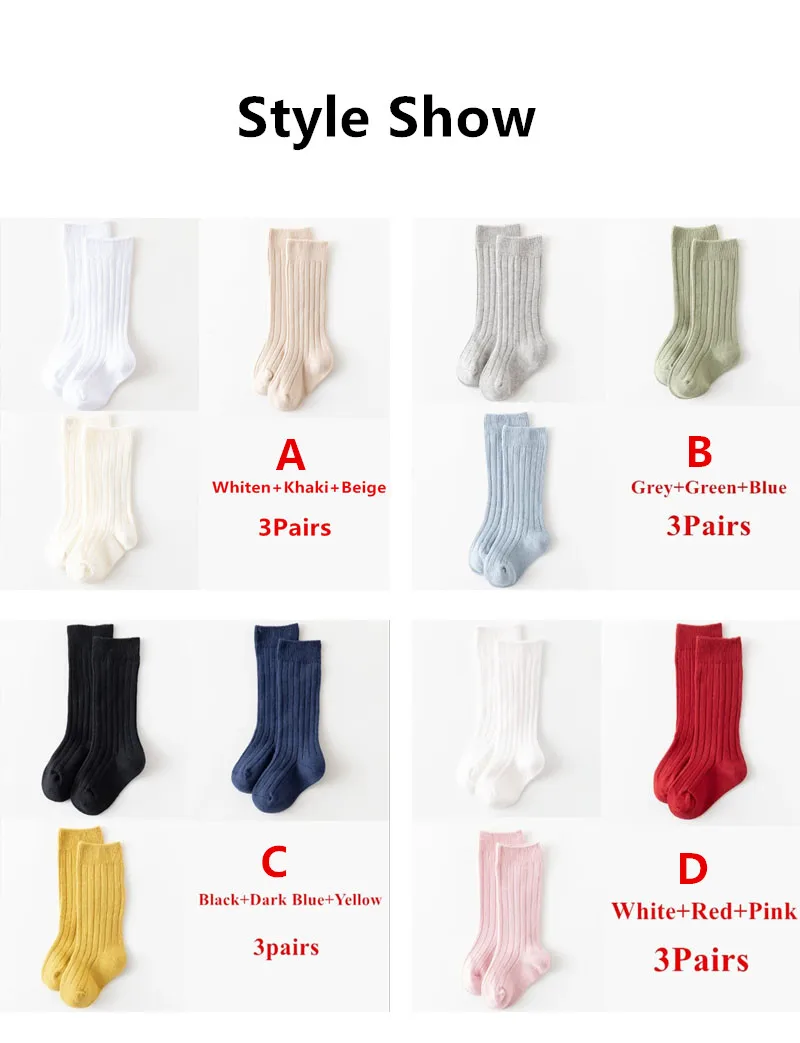 3Pairs/Lot Baby Knee High Socks Kids Girls Boys Soft Cotton Long Sock Cute Spanish Stripe Solid Children Socken For 0-8Years