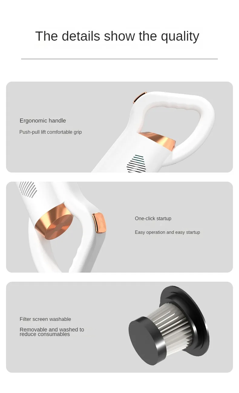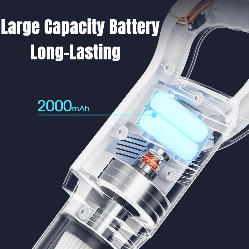 Equipped with 8500PA super suction, this wireless handheld vacuum cleaner can easily remove tiny dust and dirt. Whether cleaning carpets or hard floors, it can quickly and efficiently complete cleaning tasks.