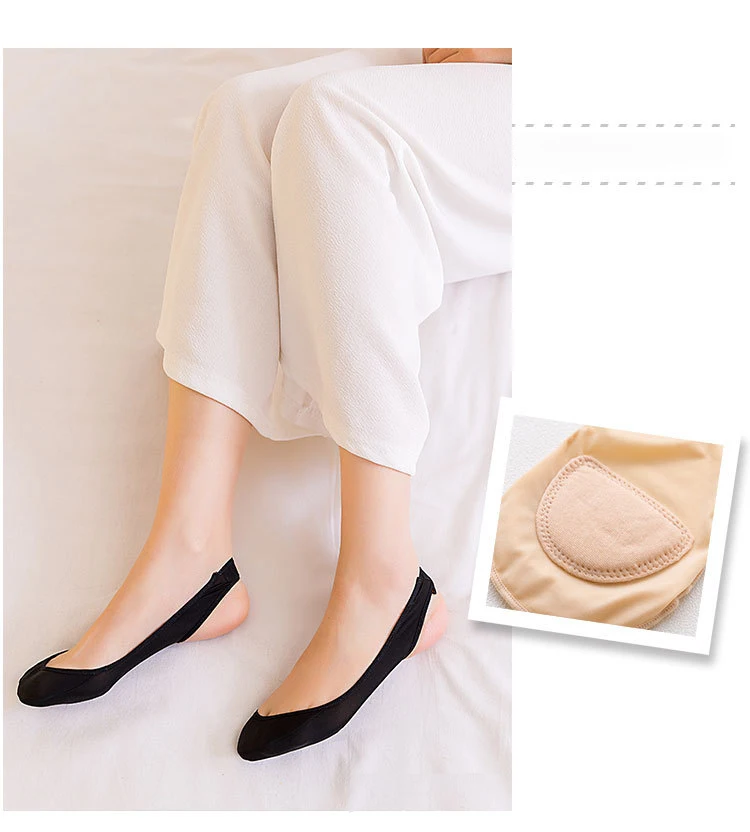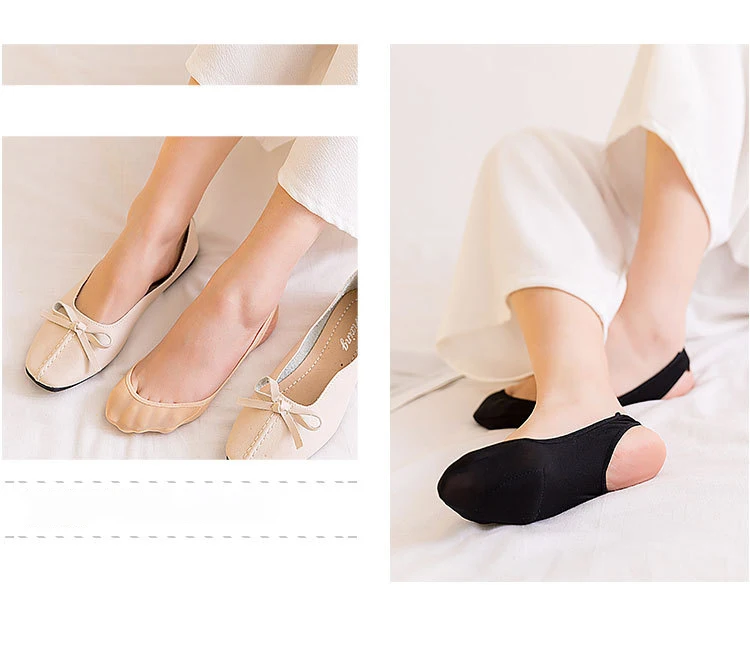 FINETOO 4 Pairs Ice Silk Ultra-thin Boat Socks Women’s Forefoot Pad Shallow Socks Hollow Sling Non-slip Boat Sock Invisible Sock