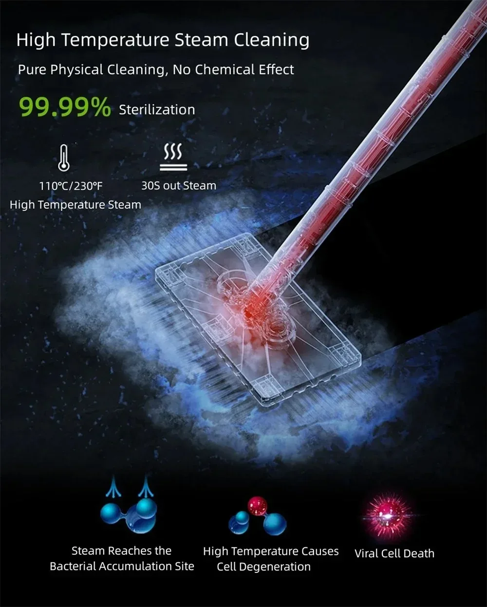 3. Single-touch button operation. High-temperature steam provides efficient cleaning while also sterilizing, disinfecting, and removing mites. The dual aluminum tube design allows for smaller packaging and multiple configurations for different scenarios, making it more convenient to use.