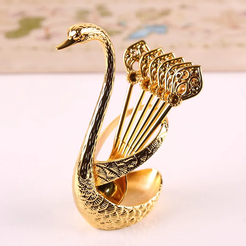 Ice Cream Cake Coffee Tea Stirring Spoons Dessert Swan Holder Cutlery Spoons Set Cutlery Kitchen Tableware 1 Set of 7 Pieces