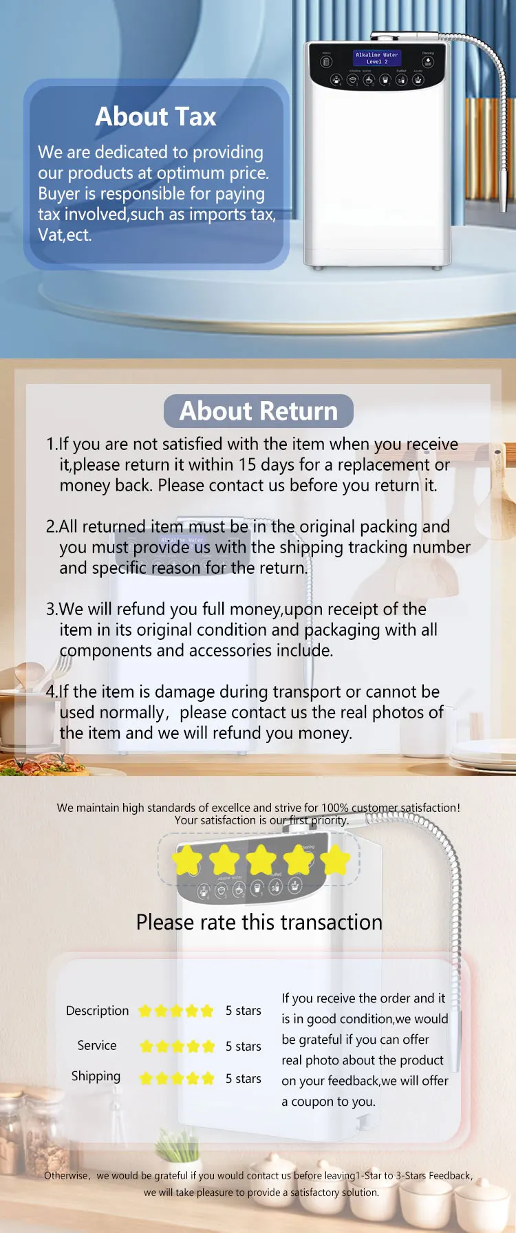 - internal filter lifespan: 8-12 months( as per local water quality)