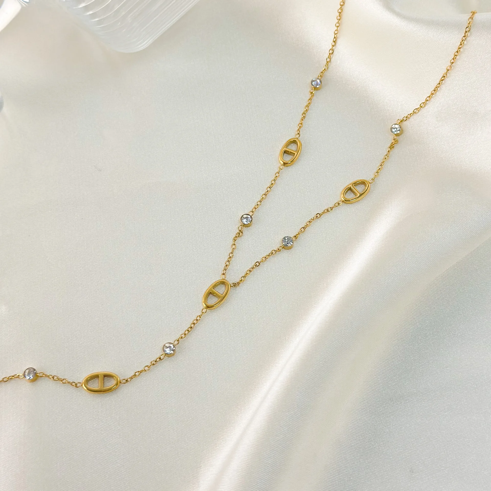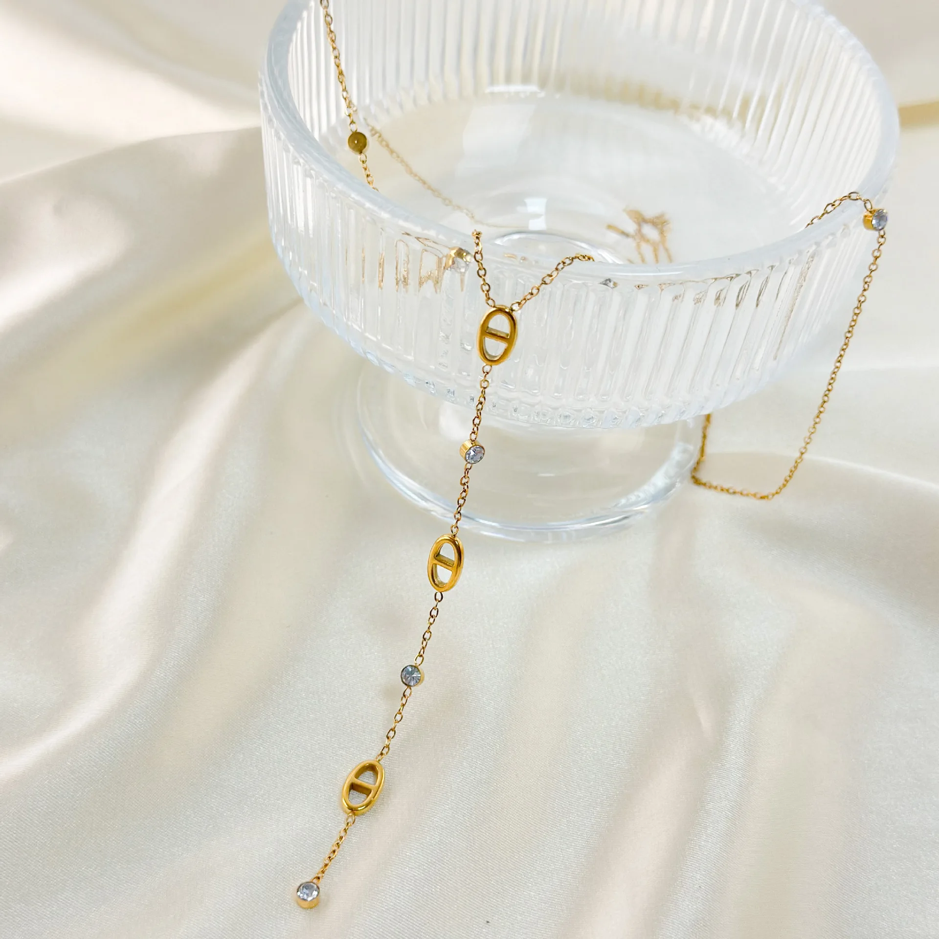 Keen on Necklace Y Chain Non Fading French Exquisite Women’s Collarbone Chain Pig Nose Tassel Titanium Steel French Classic