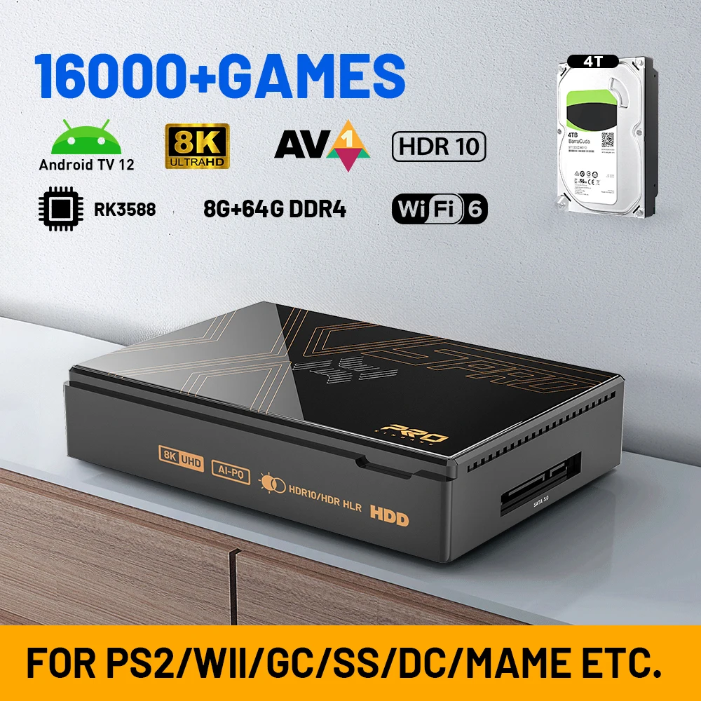 Kinhank Super Console X5 PRO Retro Video Game Console RK3588 8GDDR4 with 4T HDD 16000+ Games Plug and Play for PS2/PS1/SS/DC/N64