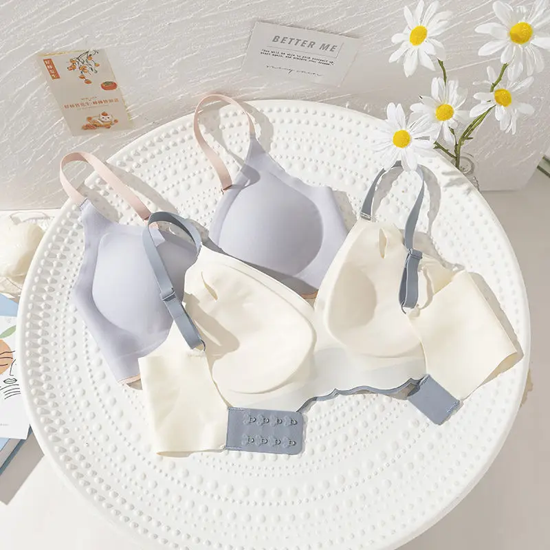 Seamless Bra Set Women Backless Underwear Suit Push Up Bras Sexy Lingerie Set Deep V Tops Soft Ice Silk Briefs Female Intimates