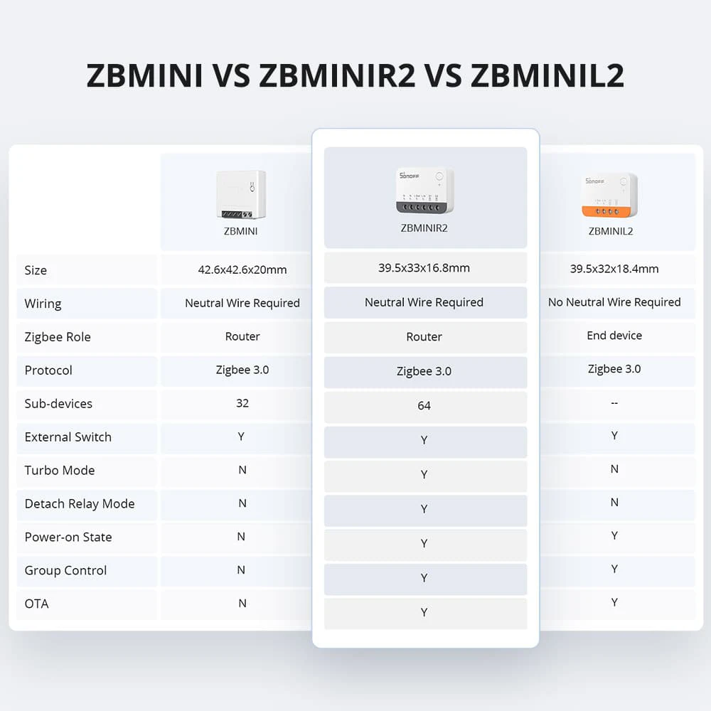 - Sonoff ZBMinir2: Sonoff Zigbee Switch