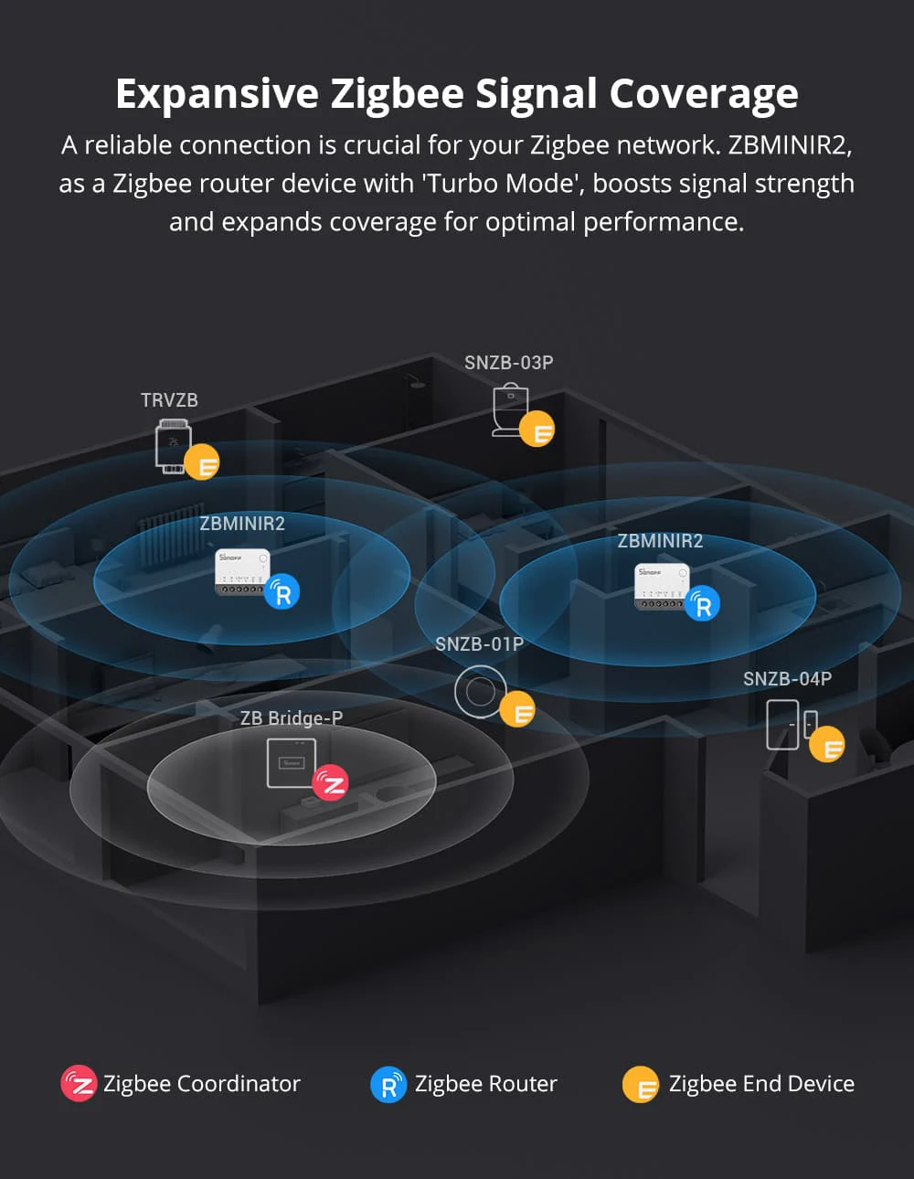 A reliable connection is crucial for your Zigbee network.ZBMINIR2, as a Zigbee router device with Turbo Mode’, supports extending up to 64 Zigbee end devices, boosts signal strength, and expands coverage for optimal performance.
