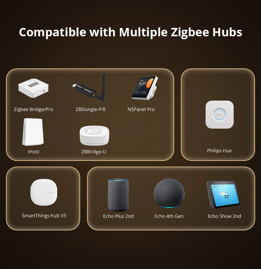 SONOFF ZBMINIR2 needs to be used with a Zigbee hub, such as SONOFF NSPanel Pro, SONOFF iHost, SONOFF ZB Bridge/ZB Bridge-P/ZB Bridge-U, Philips Hue, SmartThings hub v3, Echo Plus 2nd…