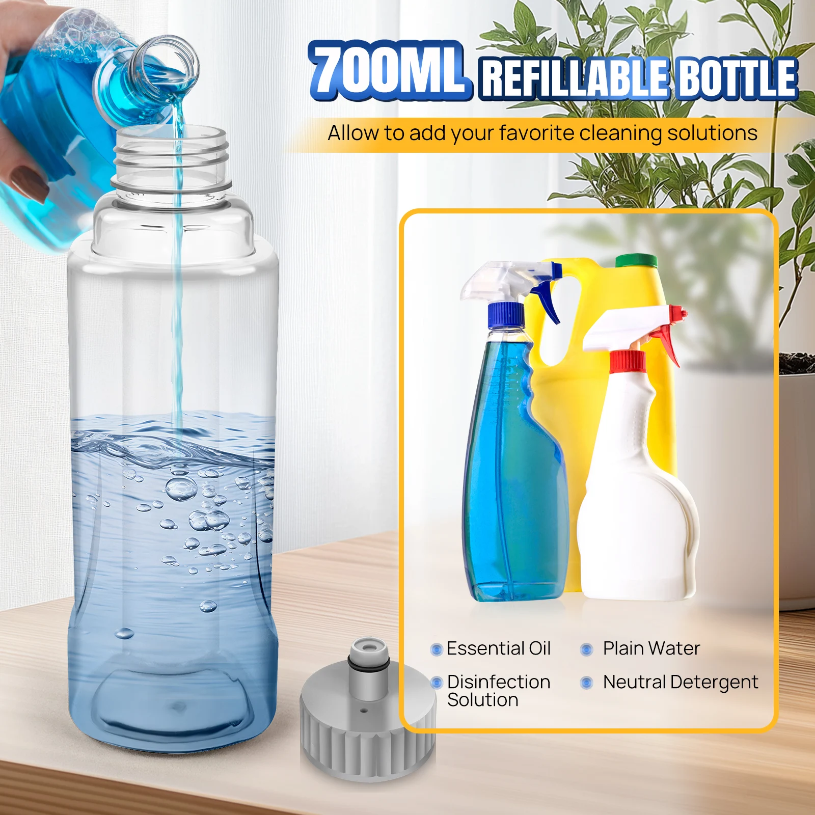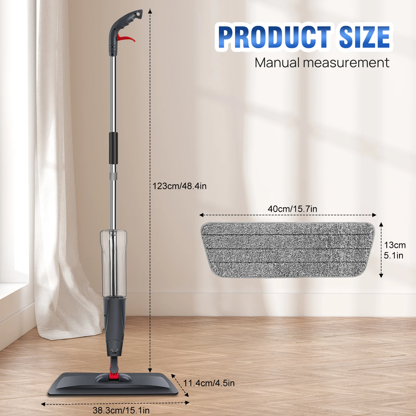 NEW UPGRADED VERSION OF THE SPRAY MOP: 700ml large capacity water tank for easy cleaning of up to 180 square metres of room without having to fill it with water. The bottle is tightly sealed to avoid leaks. Simply press the trigger and the water/cleaning solution is quickly atomised in 0.1 seconds, spraying up to 100 cm, making your cleaning job more efficient and easier.