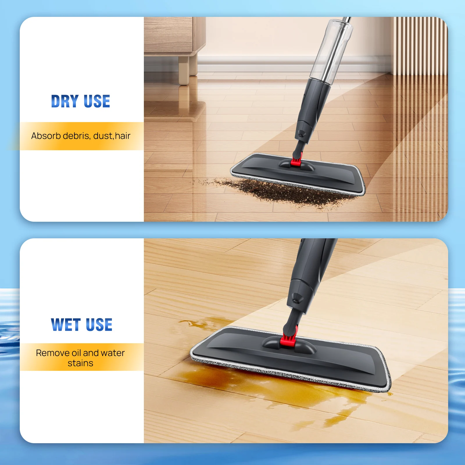 Spray Mop,Microfiber Spray Mop for Floor Cleaning Wet Dry, 360 Degree Spin Dust Home Kitchen Hardwood Floor Flat Mops with 700ML