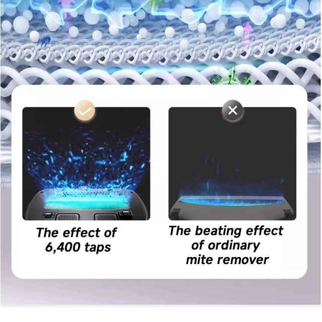 ⓵ Mites have barbed hooks that can hook the fabric strongly, so we designed 6,400 vibrations per minute to knock the mites out. This provides a guarantee for effectively killing mites.